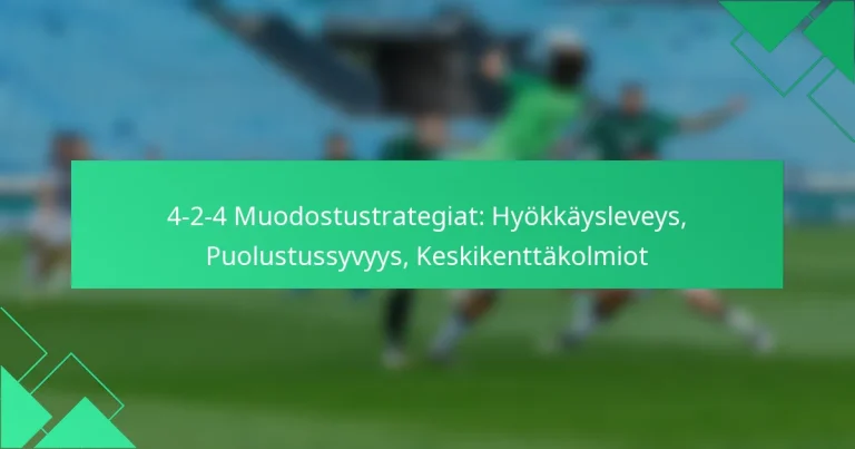 4-2-4 -muotoilu on dynaaminen taktinen asettelu jalkapallossa, joka priorisoi sekä hyökkäysvoimaa että puolustuksen vakautta. Tässä muotoilussa laitapuolustajat ovat olennaisia, sillä ne tarjoavat leveyttä ja helpottavat ylityksiä, parantaen joukkueen hyökkäysvaihtoehtoja samalla kun varmistavat vankan puolustusrakenteen. Mitkä ovat 4-2-4 -muotoilun perusperiaatteet jalkapallossa? 4-2-4 -muotoilu on taktinen asettelu jalkapallossa, jossa on neljä puolustajaa, kaksi keskikenttäpelaajaa ja neljä hyökkääjää….