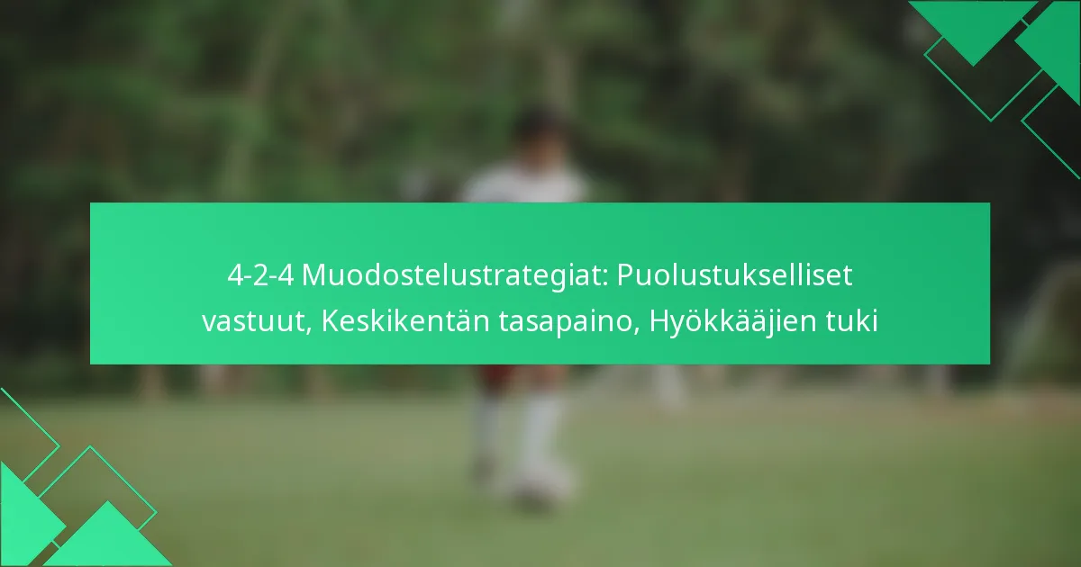 Puolustustehtävät 4-2-4 -muotoilussa keskittyvät vankan puolustuslinjan ylläpitämiseen samalla kun keskikenttäpelaajat tukevat puolustustoimia. Tämä rakenne vaatii puolustajilta tehokasta viestintää, tilojen peittämistä ja vastustajien pelaajien seuraamista maalintekopaikkojen minimoimiseksi.