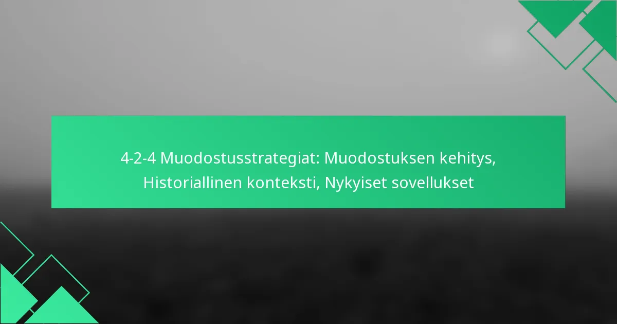 4-2-4-formaatio on dynaaminen taktinen järjestelmä jalkapallossa, joka tasapainottaa hyökkäysvoimaa ja puolustuksen järjestelmällisyyttä, sisältäen neljä puolustajaa, kaksi keskikenttäpelaajaa ja neljä hyökkääjää. Tämä muodostelma ei ainoastaan mahdollista pallonhallintapeliä, vaan myös tehokkaita prässi- ja nopeita vastahyökkäysmenetelmiä, mikä mahdollistaa joukkueiden häiritä vastustajia ja hyödyntää maalintekopaikkoja tehokkaasti.