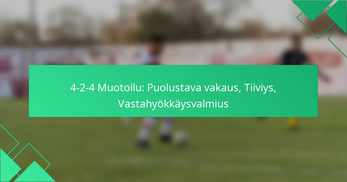 Puolustuksen syvyys 4-2-4-formaatiossa on olennaista tasapainon ylläpitämiseksi hyökkäyksen aikana. Kaksi keskikenttäpelaajaa näyttelee keskeistä roolia takalinjan suojaamisessa, varmistaen, että joukkue pysyy tiiviinä, kun pallonhallinta menetetään. Tämä syvyys mahdollistaa nopean palautumisen ja siirtymisen puolustavaan muotoon.