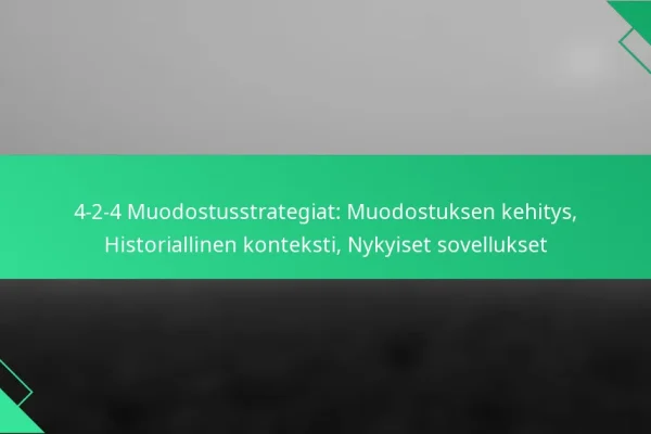 4-2-4-formaatio on dynaaminen taktinen asettelu jalkapallossa, joka tasapainottaa vahvan hyökkäysläsnäolon ja vankan puolustuspohjan. Tämän muodon tehokkuuteen vaikuttavat voimakkaasti vaihdot, jotka voivat tuoda tuoretta energiaa ja mukauttaa strategioita pelin aikana. Lisäksi joukkueen syvyys on ratkaisevassa roolissa, mikä mahdollistaa joukkueiden ylläpitää suorituskykyä ja tehdä tarvittavia säätöjä ottelun ja kauden aikana. Mitkä ovat 4-2-4-formaatio jalkapallossa? 4-2-4-formaatio on taktinen…